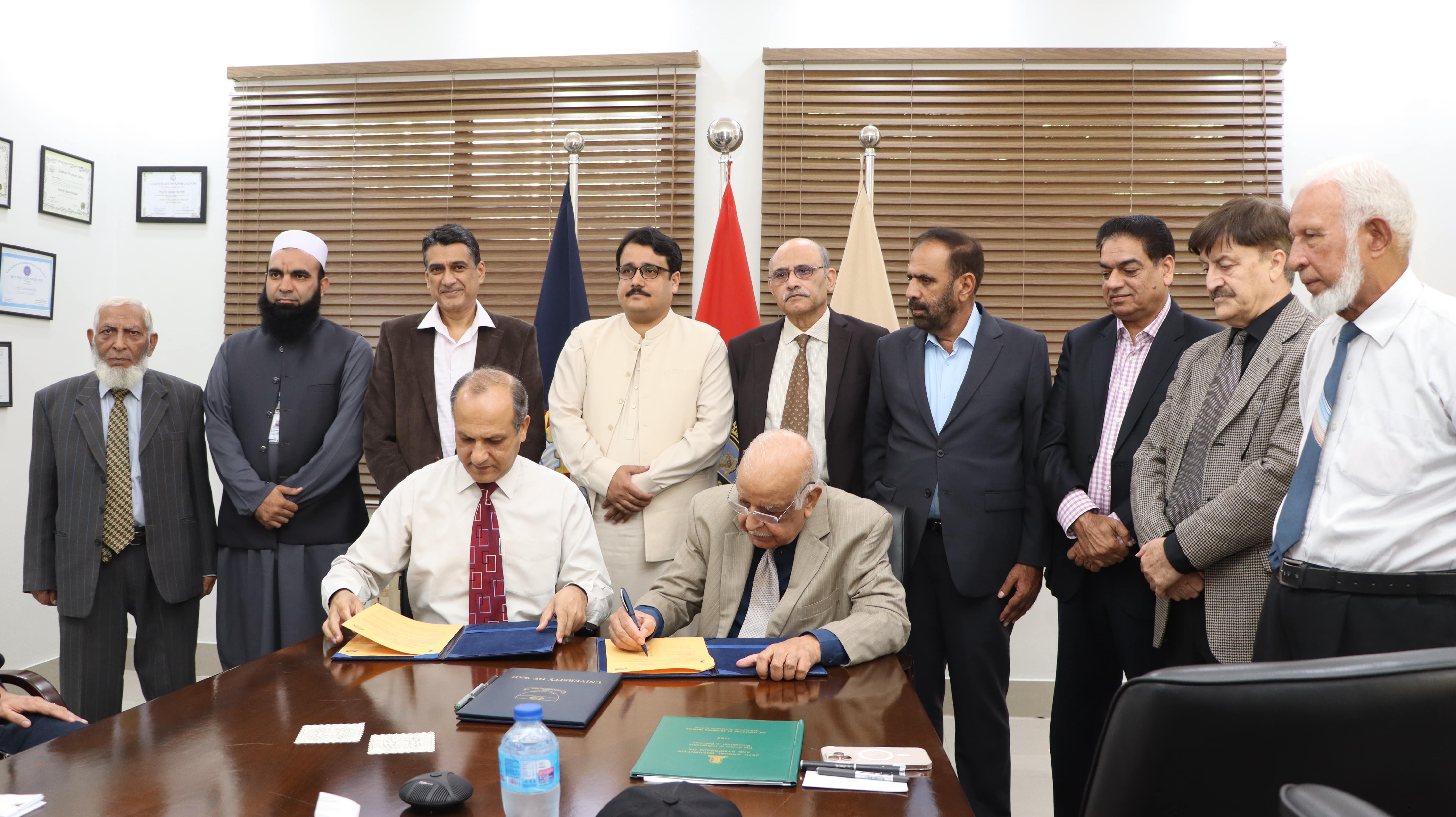 The MoU was formally signed by Prof. Dr. Adnan Tariq, Principal WEC/Dean Faculty of Engineering, and Engr. Abdur Rab, Chairman IEP-RIC, on behalf of their respective institutions. The ceremony was graced by Prof. Dr. Jameel-Un Nabi, Vice Chancellor, University of Wah, and attended by the core body members of IEP-RIC, all departmental Chairpersons of WEC, and senior faculty members.