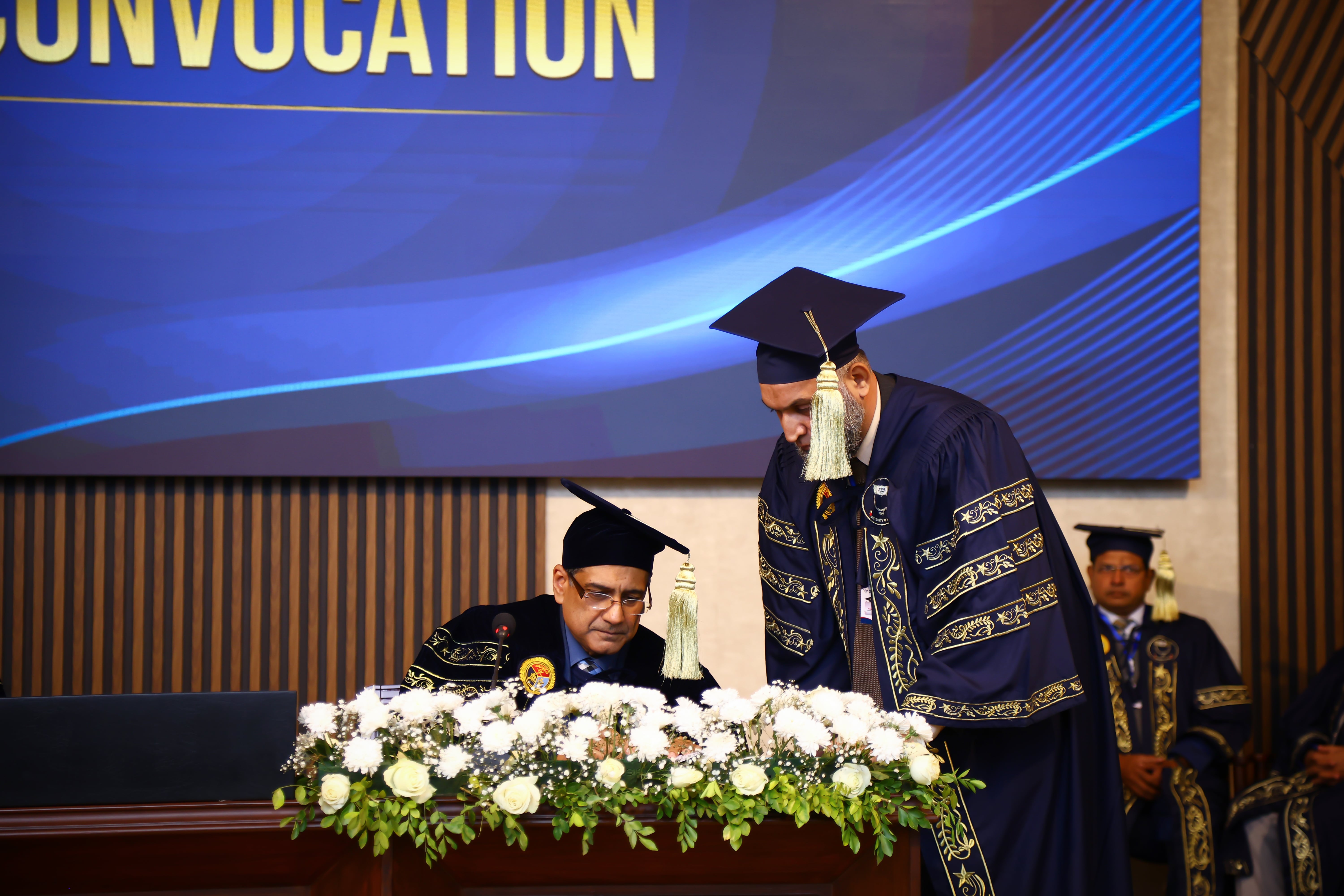 Vice Chancellor Prof. Dr. Jameel-Un Nabi, in his inaugural address, welcomed the distinguished guests and extended sincere felicitations to the graduating class. He highlighted the University’s continuous efforts to enhance academic quality, research capacity, and industry-aligned education, ensuring the development of ethical, innovative, and globally competitive professionals. He reaffirmed UW’s dedication to excellence and strategic growth to meet emerging national and global challenges. The Vice Chancellor congratulated the graduating students and their parents on this auspicious occasion.