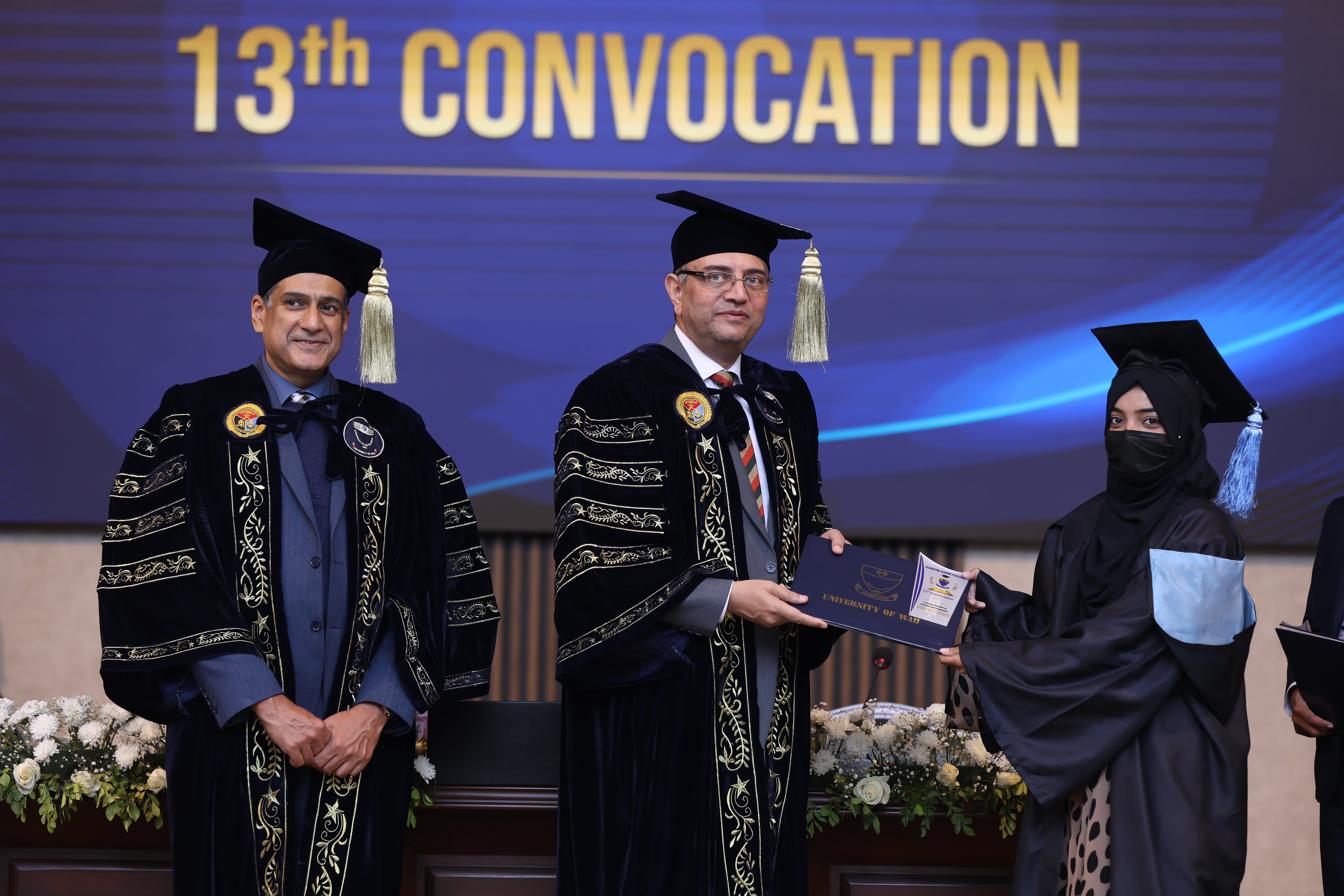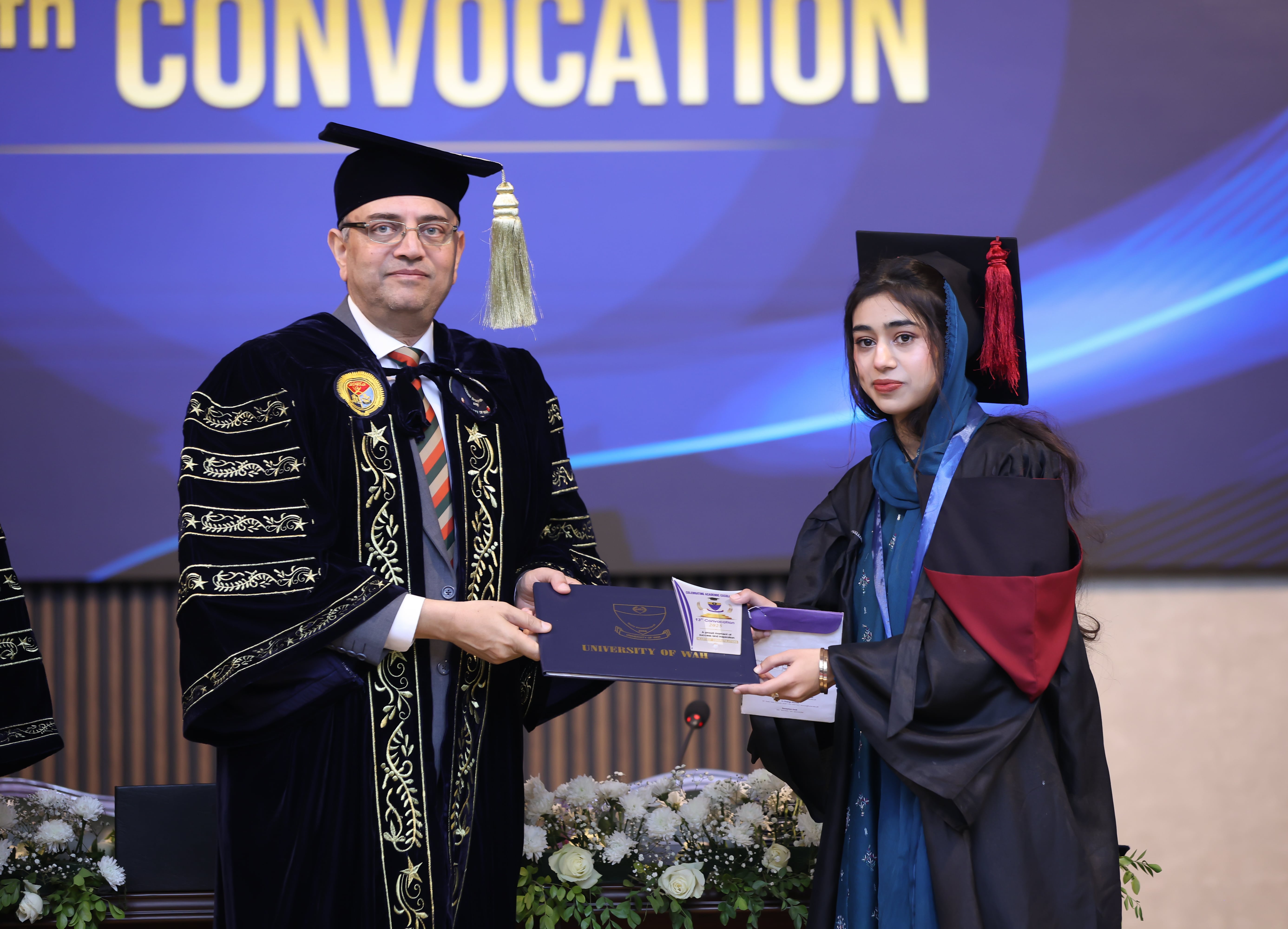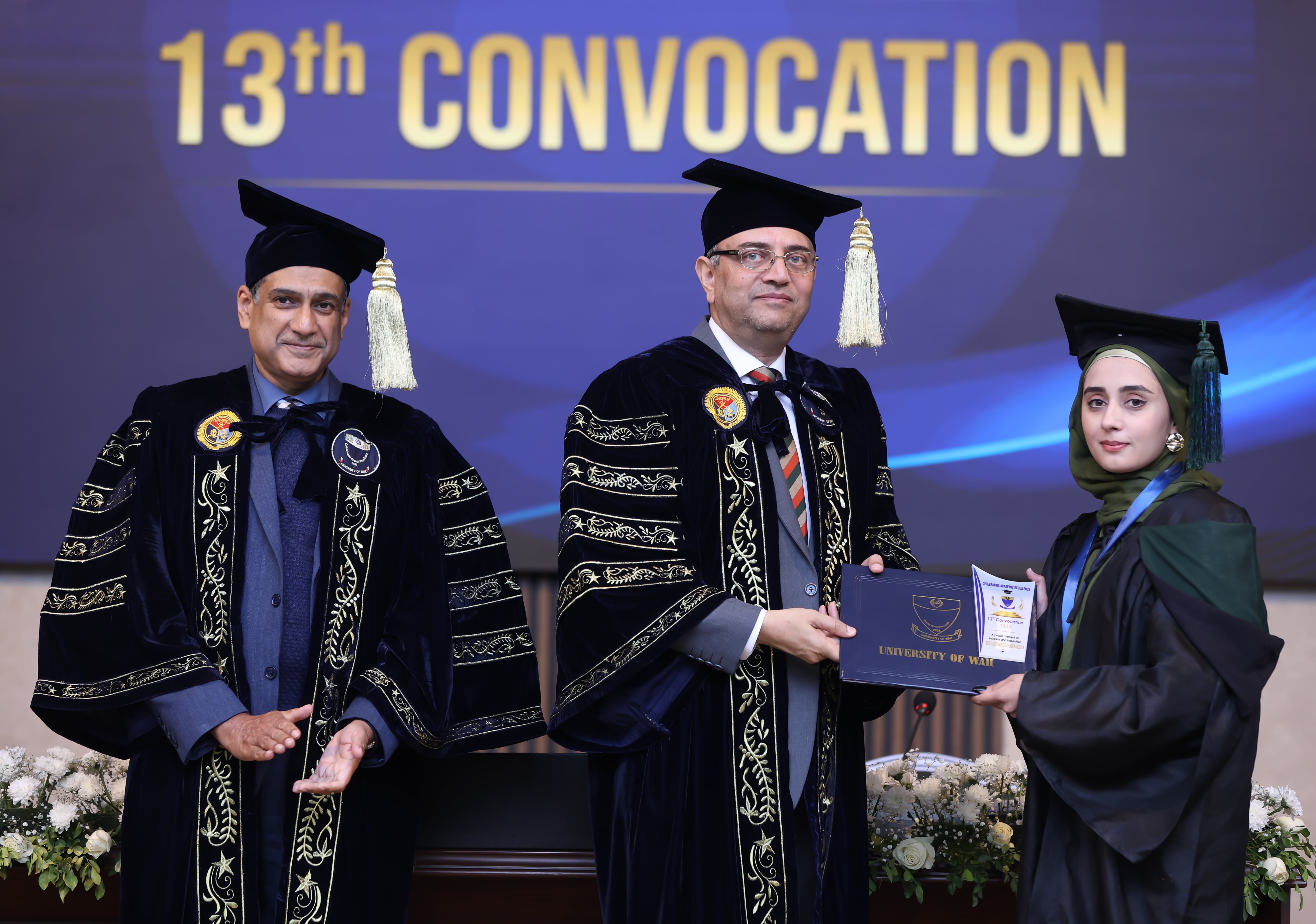 The convocation is a testament to UW’s firm commitment to nurturing competent, principled, and forward-thinking graduates prepared to lead and contribute to a progressive future. A total of 1201 students from the Faculties of Basic Sciences, Computer Science, Engineering, Management Sciences, Social Sciences & Humanities were awarded degrees. To honor exceptional performance, 43 graduates received Gold Medals, while 05 distinguished students - one from each faculty - were presented with Distinguished Student Medals.