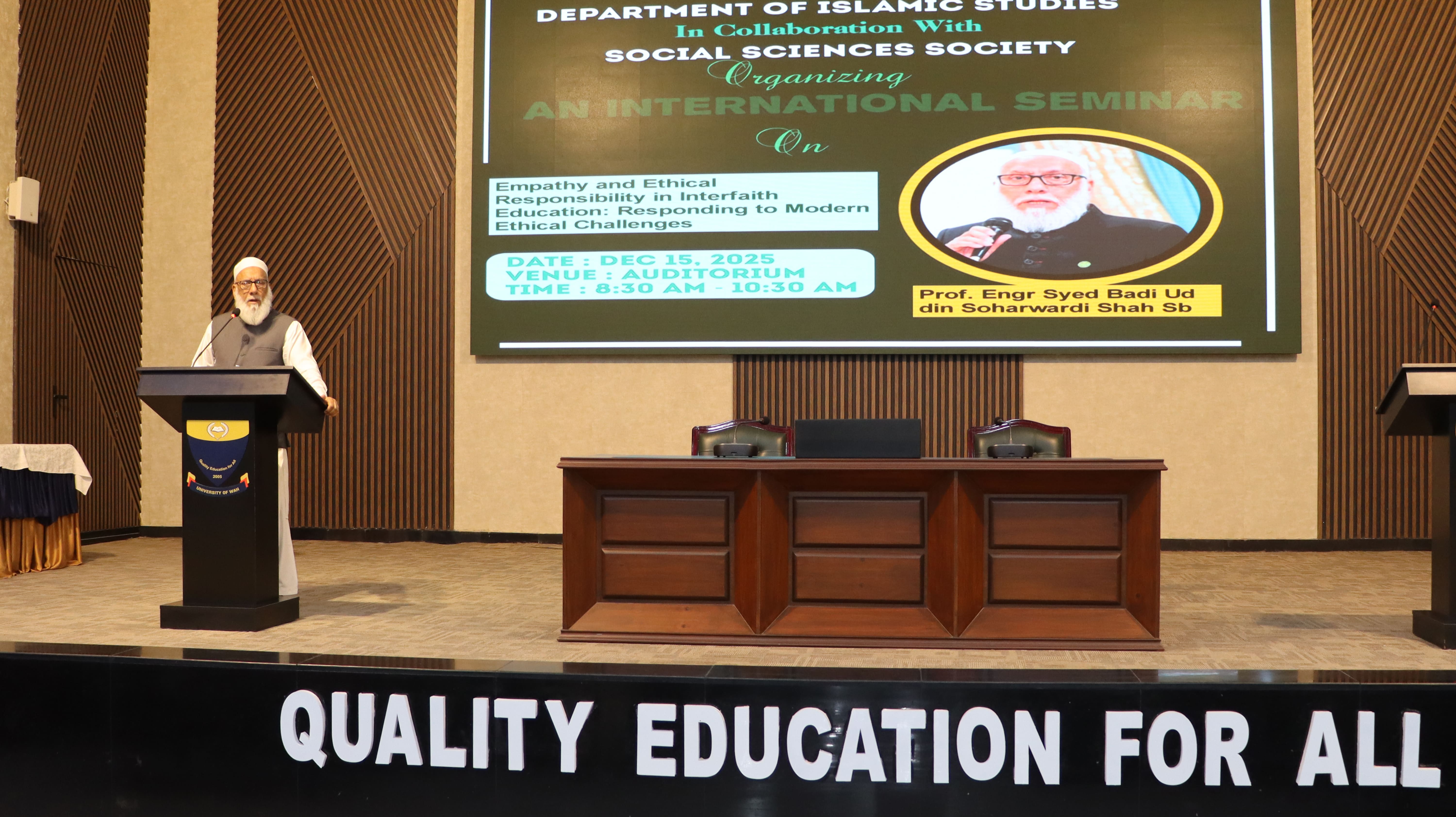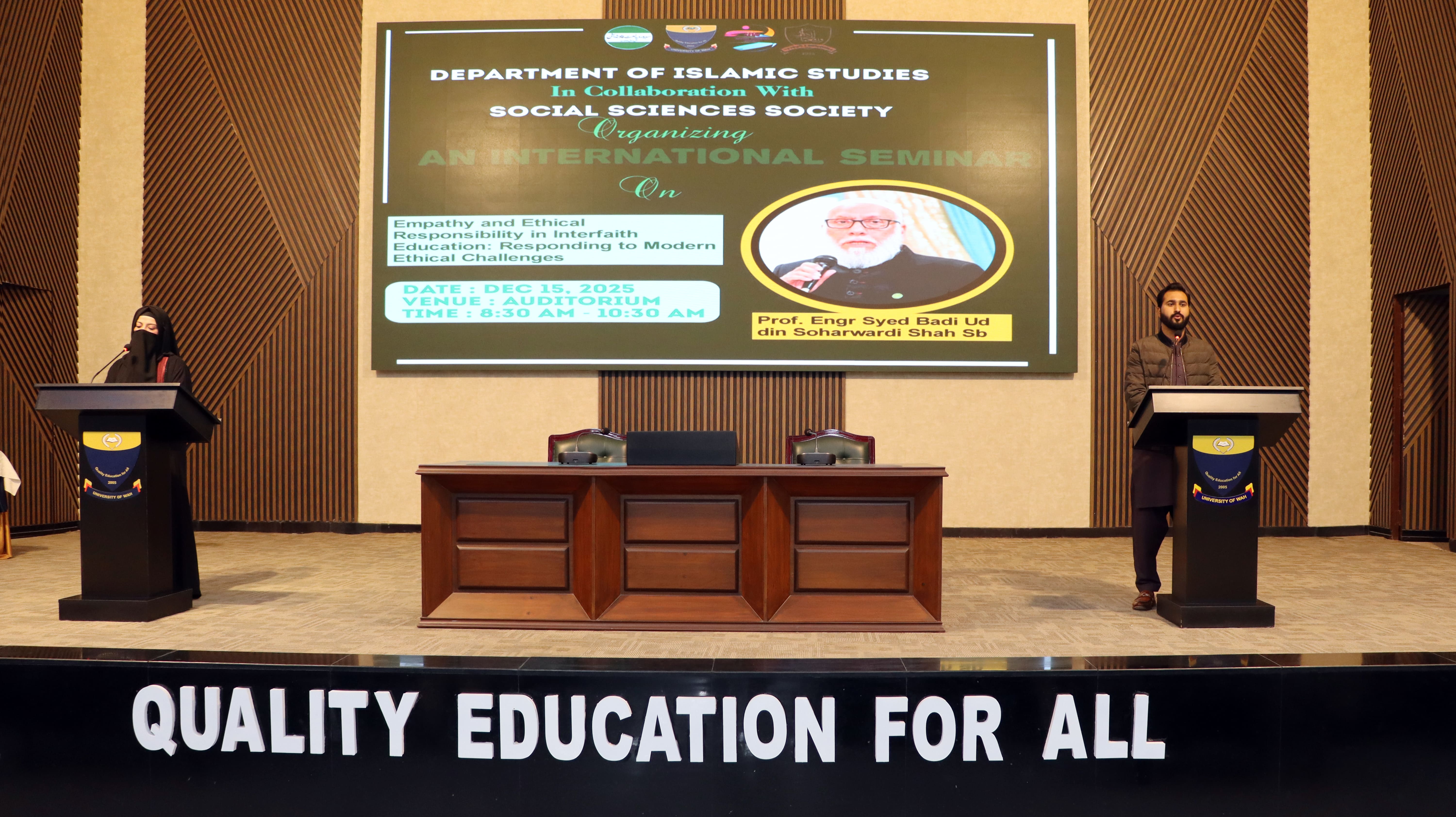 Department of Islamic Studies, in collaboration with the Social Sciences Society, University of Wah, organized an international seminar titled “Empathy and Ethical Responsibility in Interfaith Education: Responding to Modern Ethical Challenges” on 15 December, which was attended by around 800 students from various departments. It aimed to foster ethical awareness and interfaith harmony among students and faculty.