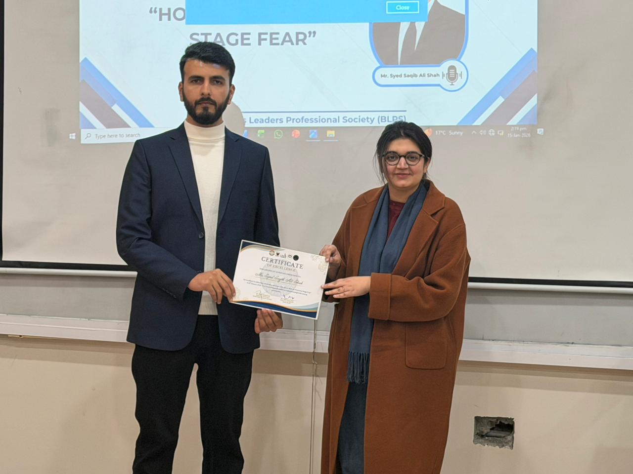 The keynote speaker, Mr. Syed Saqib Ali Shah, was joined by Mr. Muhammad Amir Khan and Ms. Nawal Mudassar from Wah Engineering College, who shared practical tips and experiences. The interactive session equipped students with techniques to manage stage fright and enhance communication. BLPS lauded the collaborative effort and reaffirmed its commitment to professional development and skill-building initiatives for students.