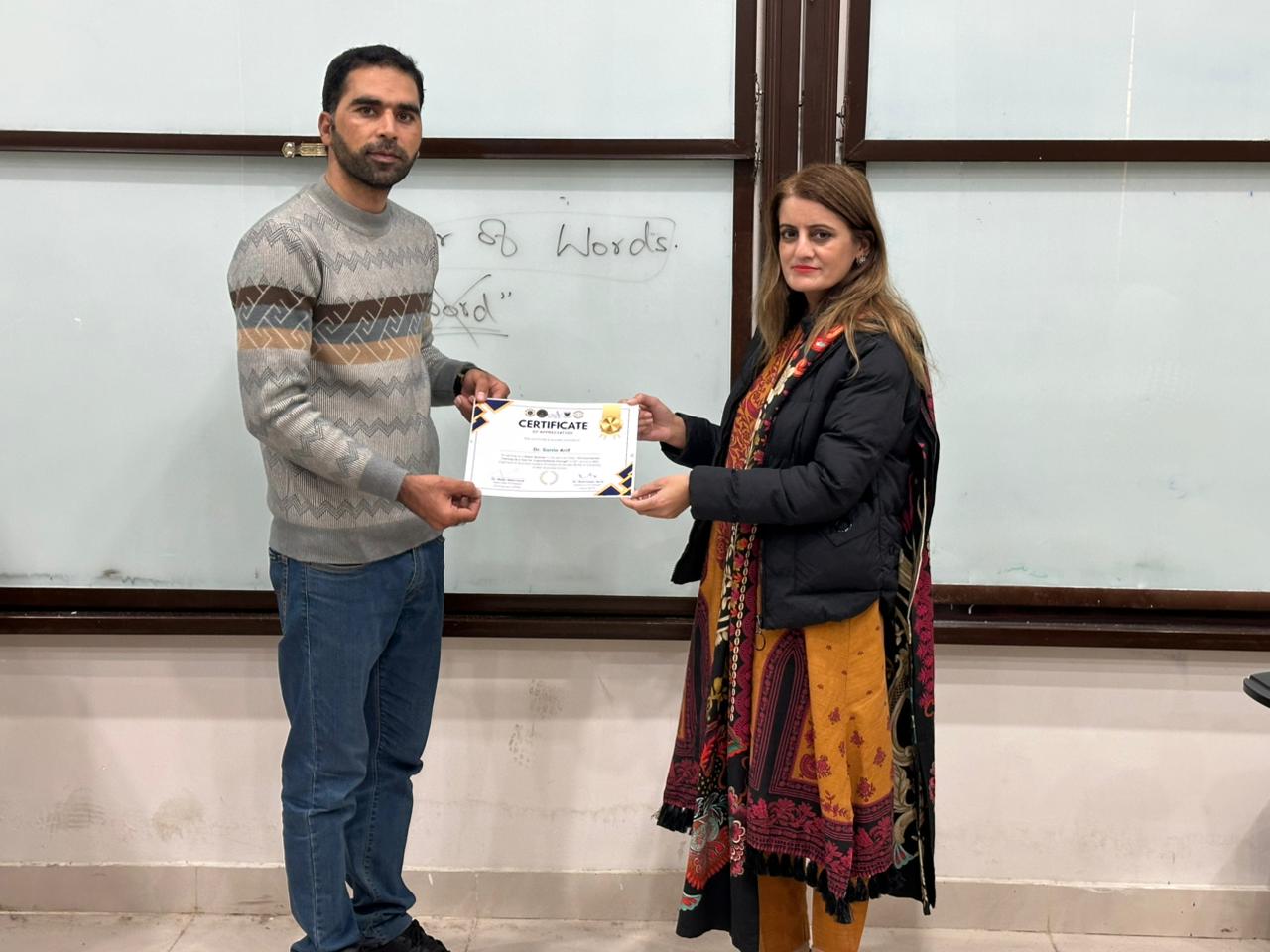 The session featured Dr. Sania Arif as the resource person, who delivered an engaging discourse on the profound impact of language on human thoughts, emotions, behavior, and leadership effectiveness. She emphasized how conscious word choice influences self-belief, relationships, and emotional well-being.