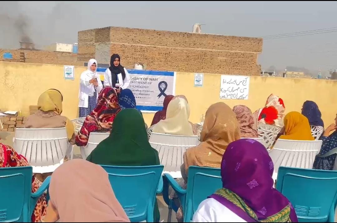 Department of Psychology, University of Wah, in collaboration with the Humanity Union Unity (HUU) Foundation, conducted a community development initiative aimed at promoting mental health awareness and reducing stigma in rural communities on 13 February 2026. The activity took place at Jameel Town, Village Mari Kanjoor, and Attock Village Mari Kanjoor, under the guidance of Prof. Dr. Muhammad Rizwan, Chairperson, Department of Psychology, and course instructor Ms. Wajiha Arshad. The project saw active participation from BS Psychology students: Ms. Aiman Aara, Ms. Emaan Faisal, Ms. Umeema Ahmed, Ms. Kaynat Rashid, Ms. Nimra Shaukat, Ms. Hira Ihsan, Ms. Shafaq Anwar, Ms. Nimra Malik, Ms. Amna Khan, and Ms. Sawera Kanwal.