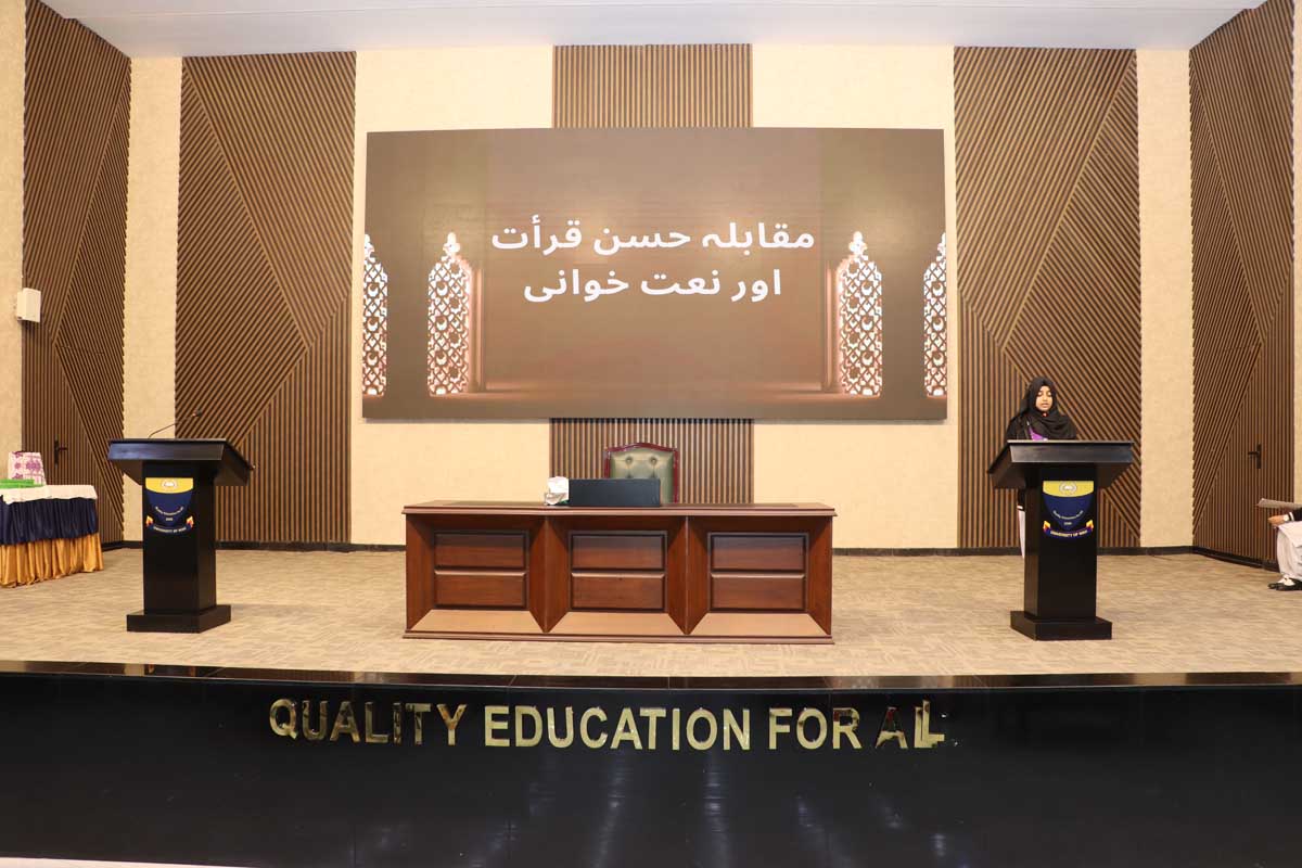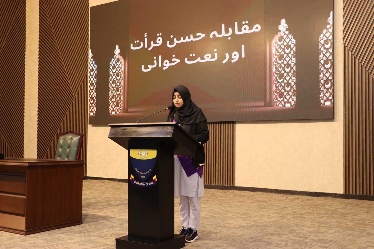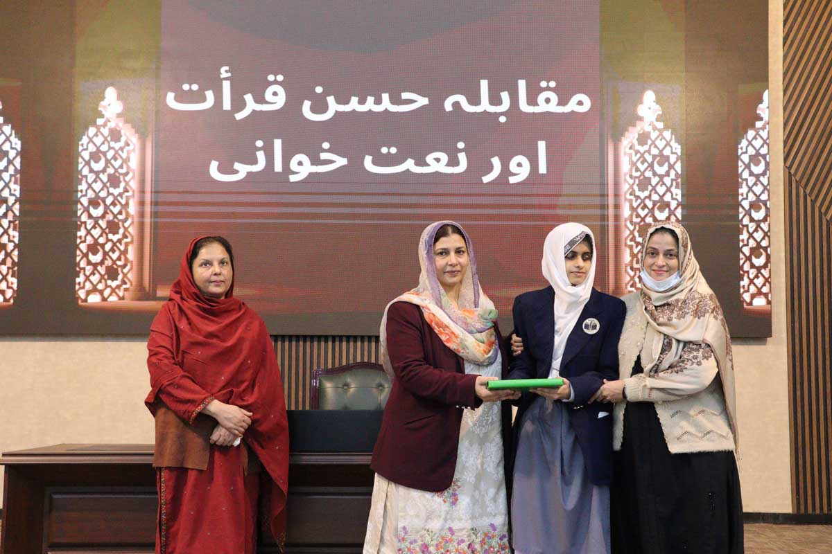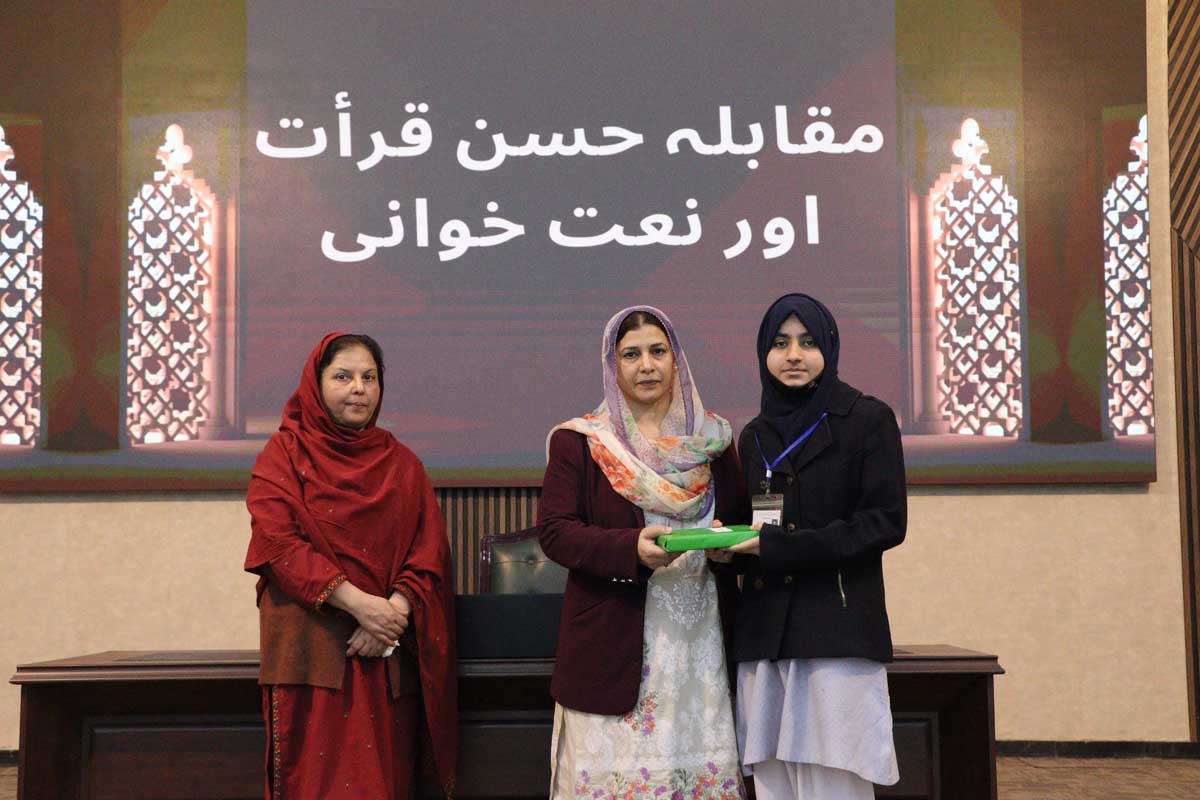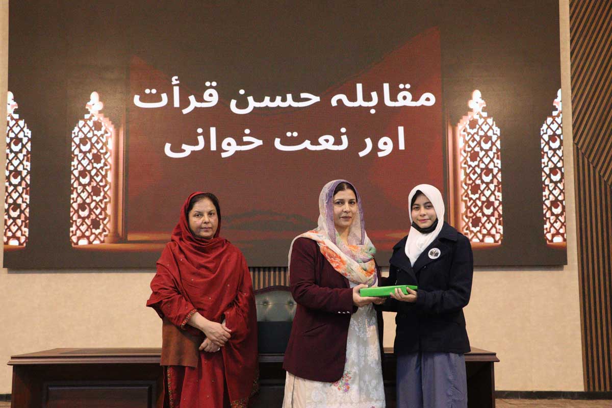 Mashal Degree College (MDC), to promote Islamic culture and values among students, organized an Inter-Schools Qiraat and Naat Competition on 03 December 2024. The event, marked by a majestic gathering of devout hearts, aimed to foster a deeper connection with Islamic teachings among young minds. Prof. Dr. Uzma Ghazanfar, Dean, Faculty of Basic Sciences, University of Wah, graced the occasion as the Chief Guest. In her address, she highlighted the significance of integrating the teachings of the Holy Prophet (PBUH) into daily life, inspiring students to embody the values of compassion, humility, and service. The competition concluded with the distribution of prizes and certificates to the participants, acknowledging their heartfelt recitations and performances. Following the ceremony, the participants were given an opportunity to visit the state-of-the-art laboratories of MDC, offering them an enriching academic experience.
