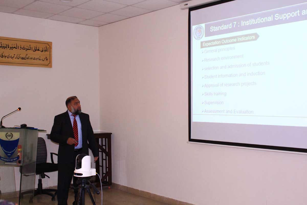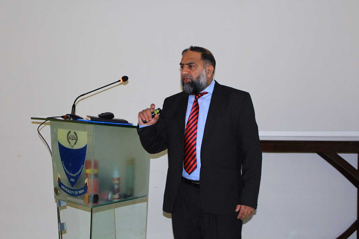 Directorate of Quality Assurance and Enhancement (QA&E), University of Wah (UW), conducted a training session on Program Review Effectiveness and Enhancement (PREE) under the new HEC Framework PSG-2023 on 11 December 2024. The objective of the workshop was to enhance quality and ensure compliance with evolving academic benchmarks through continuous professional development. Mr. Kashif Imran, Senior Deputy Director of Quality at NUTECH University, Islamabad, was the resource person who provided valuable insights into applying the updated framework, equipping participants with practical tools and understanding. 36 Program Team (PT) members from 18 departments attended the session. Dr. Shaukat Ali, Director QA&E-UW, thanked Mr. Imran for his exceptional delivery and emphasized the significance of such training in enhancing academic quality and aligning programs with current standards.