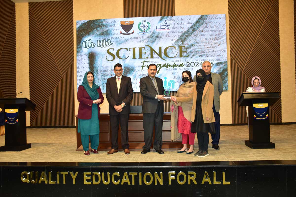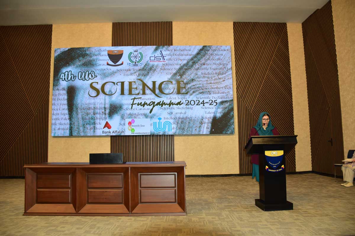 University of Wah Science Society (UWSS), under the patronage of Prof. Dr. Uzma Ghazanfar, Dean, Faculty of Basic Sciences, and the supervision of Ms. Zeenat Haq, Faculty in charge UWSS, organized the fourth UW Science Fun Gamma, a grand national event that brought together guests, faculty, and students from top-notch educational institutions on 19 December 2024, fostering a spirit of innovation and collaboration through 17 meticulously designed modules. The event featured intellectually stimulating activities such as STEM Quest, Scientific Crossword, Intellect Insight, Science Mockups, Scientific Treasure Hunt, Sci Cycle, and a lively Sci Carnival, showcasing creativity and scientific curiosity.