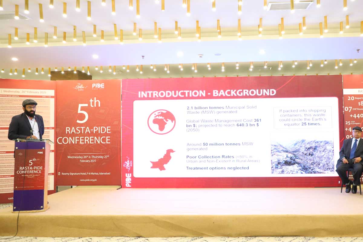 University of Wah participated in the prestigious 5th RASTA-PIDE Conference held in Islamabad from 26-27 February 2025, organized by the Pakistan Institute of Development Economics (PIDE) under the RASTA research initiative, providing a platform for scholars to present groundbreaking research contributing to policy-driven solutions. Mr. Shoaib Muhammad, Lecturer, Civil Engineering Department, presented his closing research presentation of his research project titled "Comprehensive Assessment of Conventional Practices and Sustainable Pathways for Solid Waste Management: Integrating Perspectives, Practices, and Environmental Impact" that he was awarded last year under the CGP 6.0 (Competitive Grants Program). His research emphasizes the university's commitment to addressing environmental challenges through innovation and evidence-based policymaking.