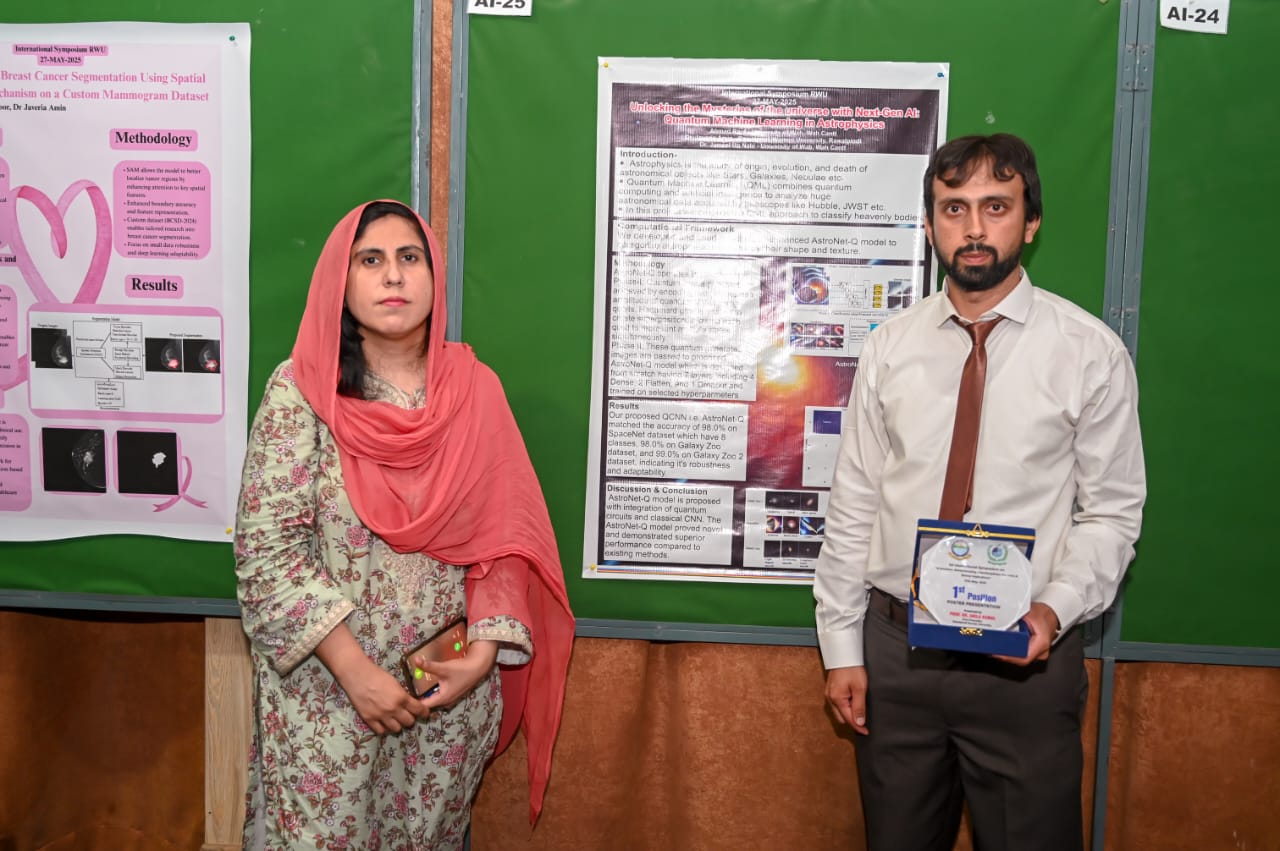 The event included keynote talks, poster presentations, and interactive sessions with field experts. The symposium featured renowned national and international AI experts and drew participation from across disciplines, including AI, healthcare, agriculture, engineering, and ethics. Mr. Ahmad Rauf’s poster stood out for its scientific rigor and innovative interdisciplinary approach, earning top honors among numerous entries from across the country. This remarkable achievement reflects the high-quality research being conducted at UW and is a testament to the academic excellence fostered by our faculty.